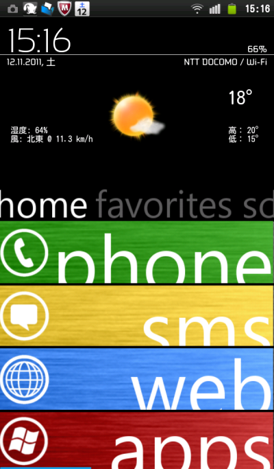 アイコンは、ADWのテーマAndroidPhone7を使ってます。