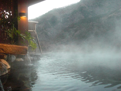 露天風呂は、温泉と渓谷の境目が空に飛び出しているようで、とても眺めのイイ素晴らしい温泉でした。