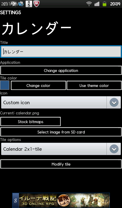 WP7風のカレンダータイルも作れるんですが、どうも曜日が日本語なのが気に入らないと、予定が一発で確認できない為使ってません。
